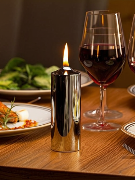 Sleek stainless steel design in silver, rose gold, and classic black. The lamp oil-powered flame mimics a perfect cozy glow. Durable and stylish, it’s an ideal accent for any setting.
